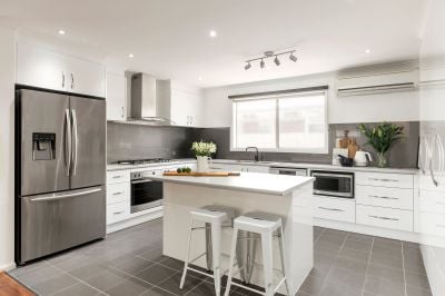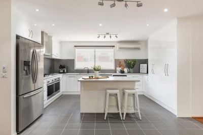 For the head: Located in a quiet tree-lined street, this light-filled family home offers contemporary single-level living that will appeal to a wide range of buyers. The main entrance opens to a spacious lounge room with views of the garden. The stylishly renovated kitchen features an island bench, dishwasher, dual under-bench ovens, gas cooktop, and excellent storage. A second versatile living room opens via a sliding door to a pergola and outdoor dining area. There are four generous bedrooms, the main complete with ensuite and walk-in-robe, plus a family bathroom with bath, shower and separate toilet. The beautiful established gardens are low maintenance, securely fenced and create multiple zones in which to relax outdoors. There is excellent off-street parking and a double garage with remote controlled roller door. As an added bonus, there is a bungalow separate from the main residence, that can be used as a studio, gym or work-from-home office. Extra features include renovated laundry, security cameras, ducted heating, and reverse-cycle cooling.