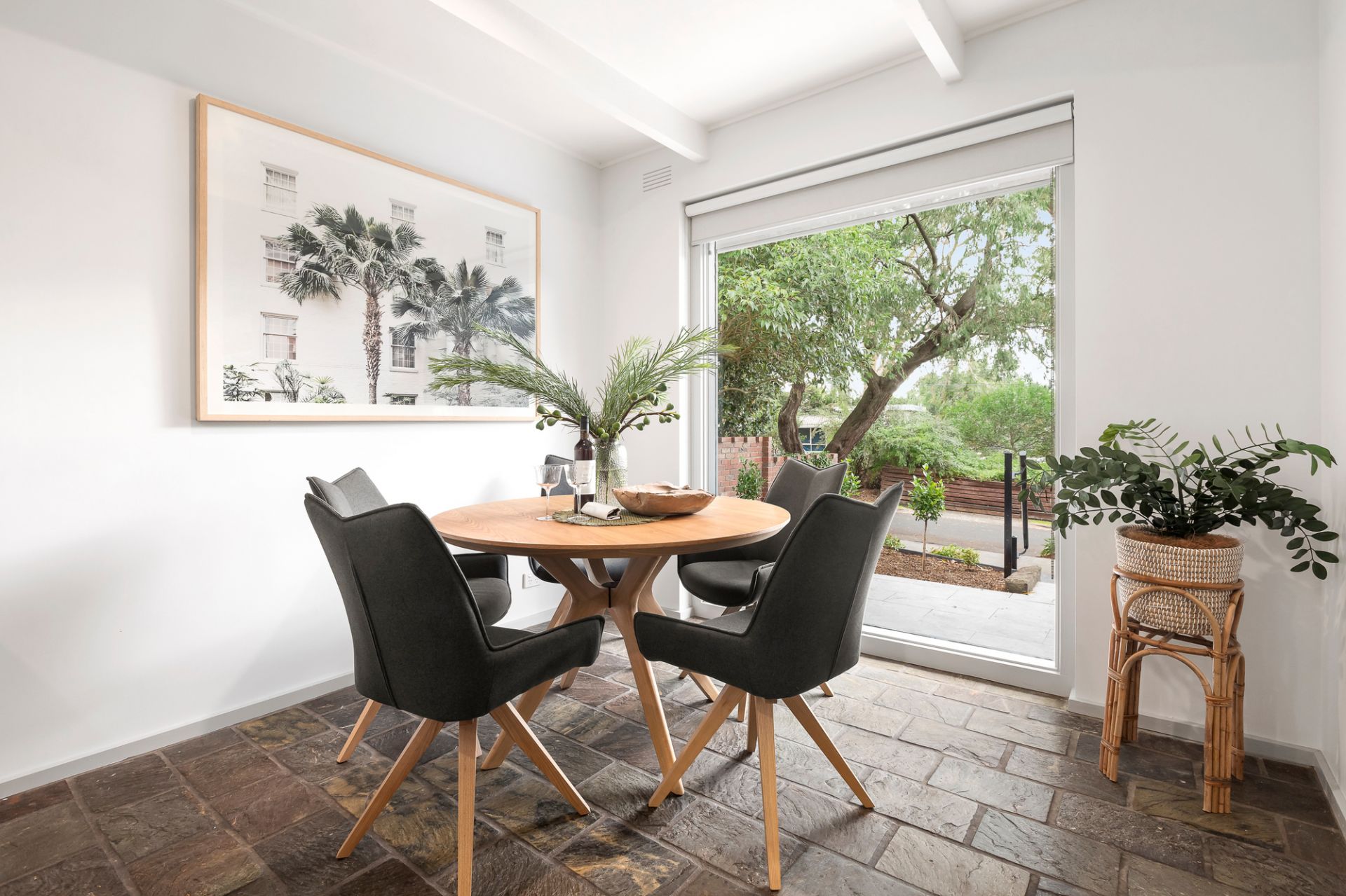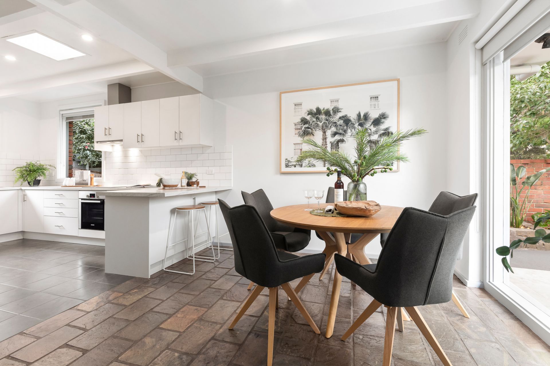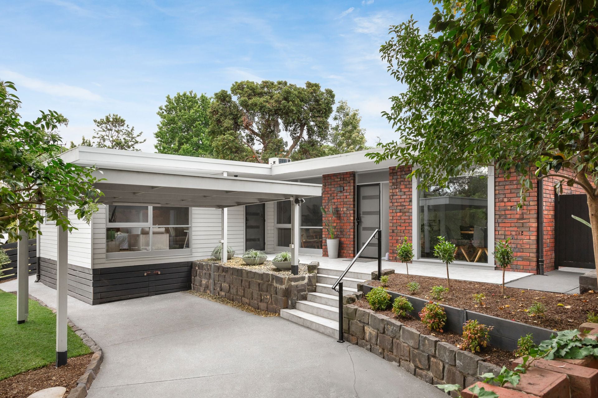 Set amidst beautifully landscaped gardens and just metres away from the Wallace Avenue Reserve, this character home has been thoughtfully updated to create a contemporary residence whilst retaining retro design flair. The striking clinker brick facade is framed and complimented by a high brick fence that creates an impressive street presence. Bluestone garden beds surround the property and are sure to impress and delight. Boasting authentic craftsmanship and charm throughout, architectural features including high ceilings with exposed beams and gorgeous picture windows, paired with a soft-neutral interior palette has resulted in stunning light-filled living spaces. The versatile floorplan can be customised to suit, and with two front entrances, offers possibilities to accommodate multi-generational families or establish a home-office. A recently updated cook’s kitchen and meals area with garden views is complete with induction cooktop, under-bench oven, dishwasher and excellent storage. There are four generous bedrooms, the main complete with stylishly renovated ensuite, and the modern renovated family bathroom is equipped with shower and bath. The garden design is inspired, with its carefully curated planting and several paved areas to relax and enjoy the sunshine or entertain friends and family. Additional features of the home include renovated laundry, reverse-cycle heating and cooling, shed, carport and off-street parking for several vehicles.