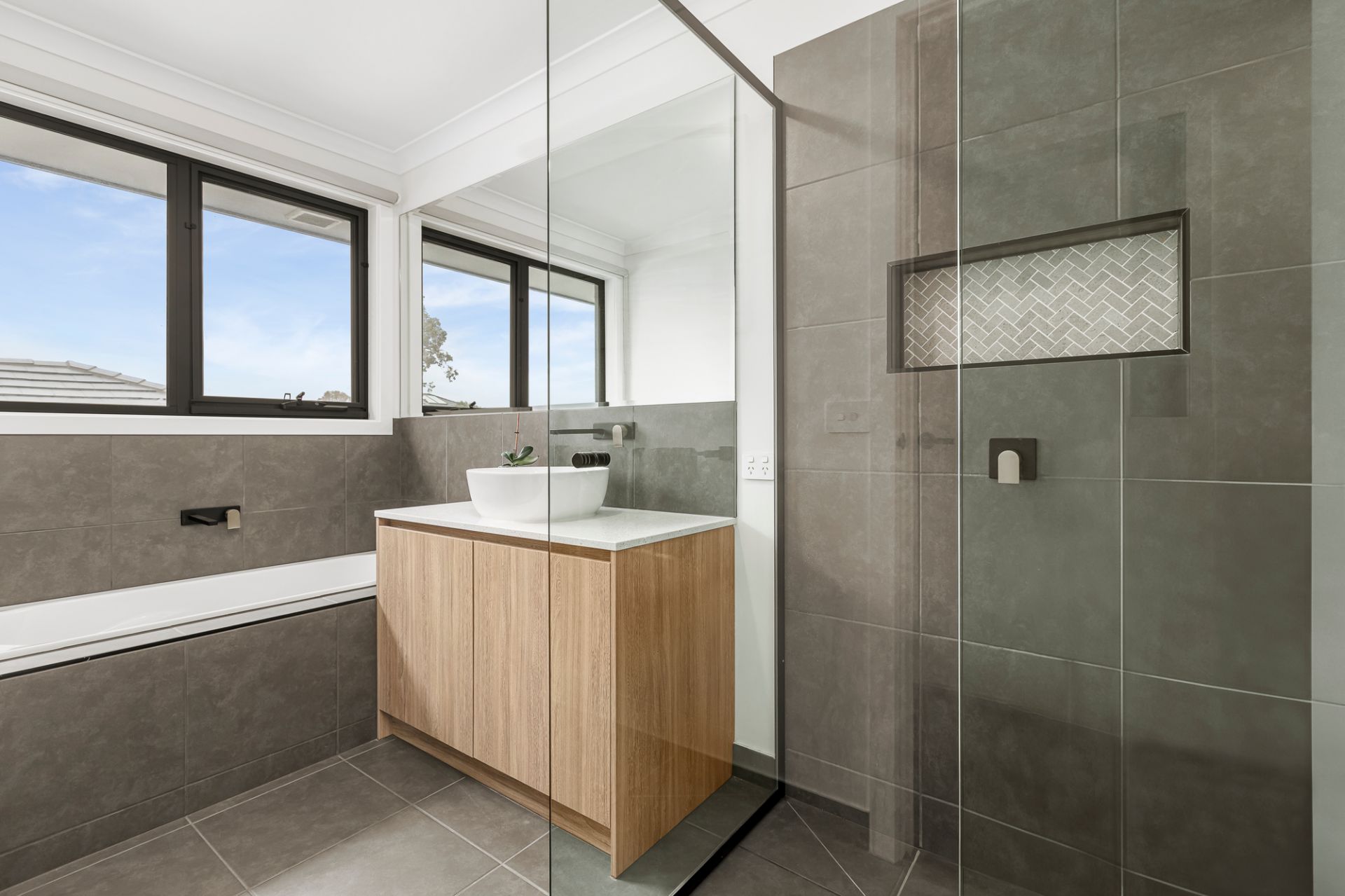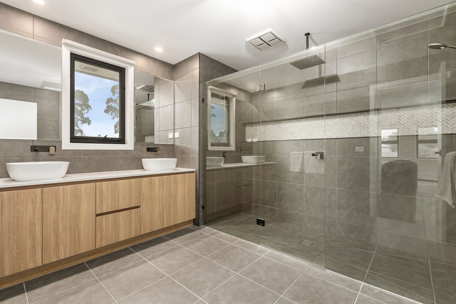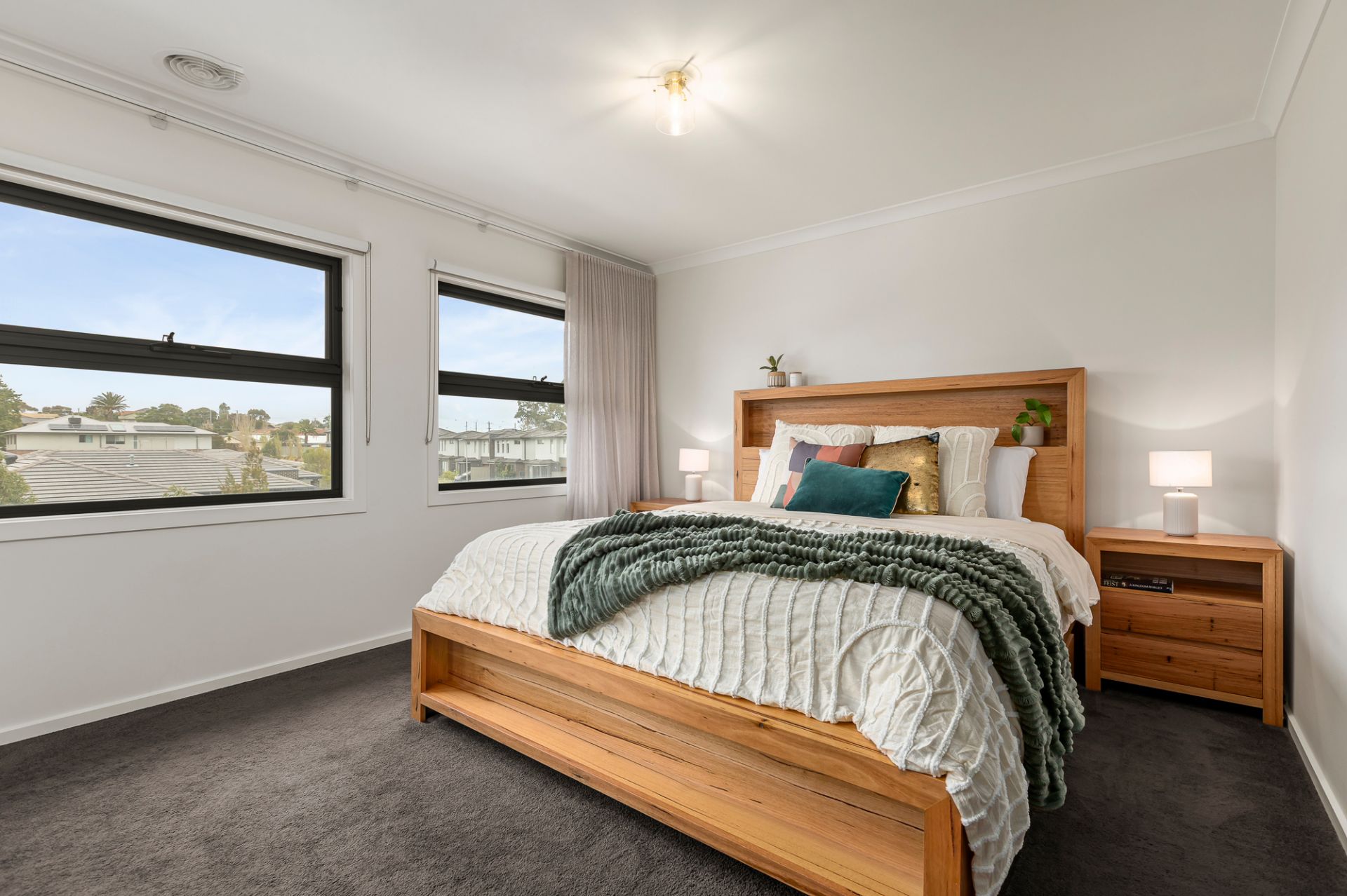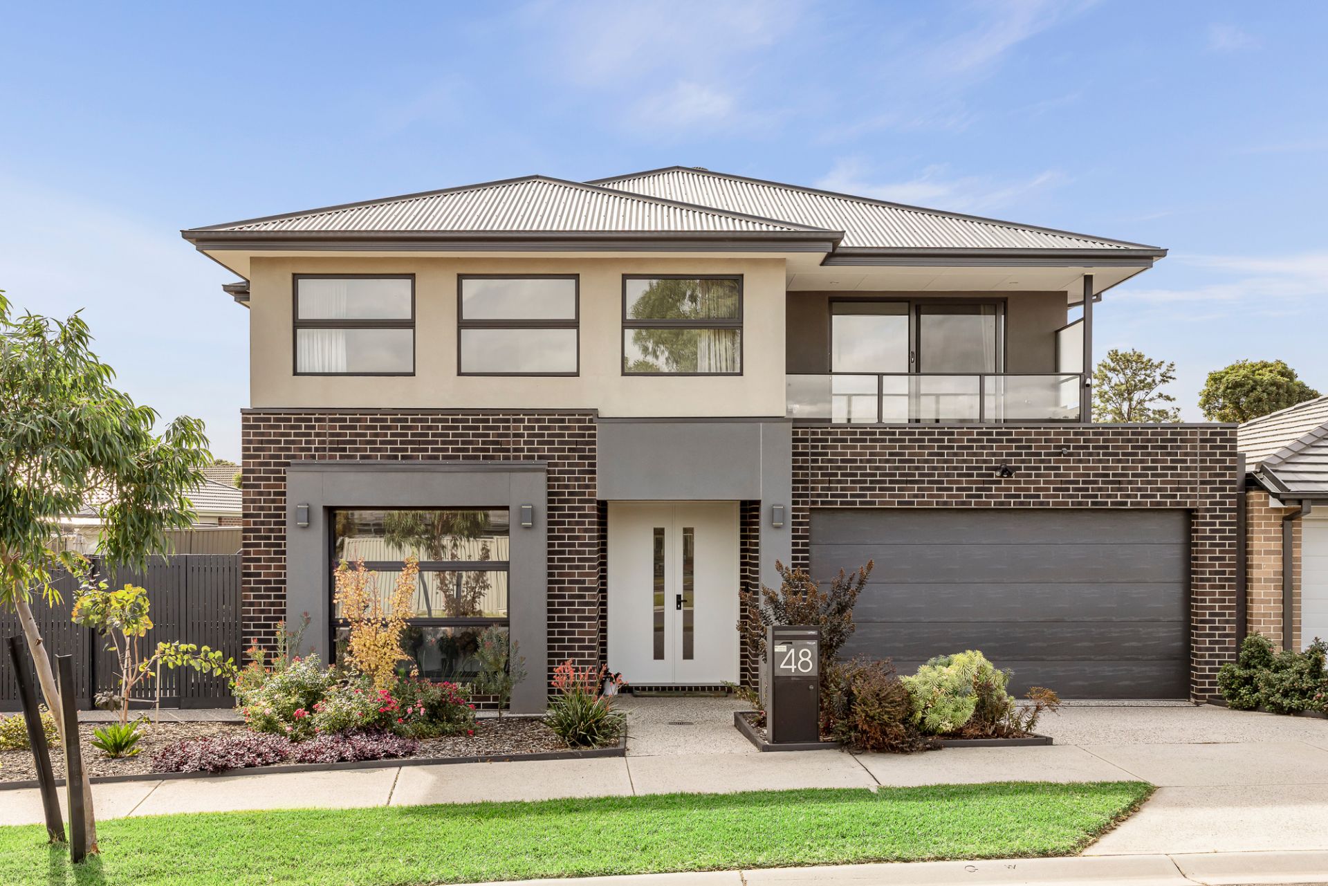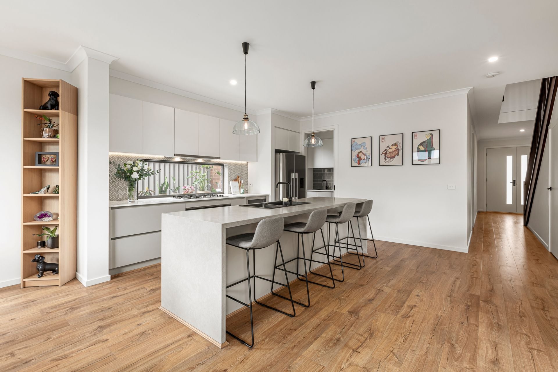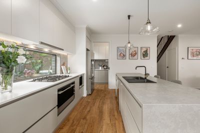 This premium, near new five-bedroom home built in 2021 by Beechwood Homes has been thoughtfully designed to accommodate a wide array of family configurations with its versatile layout. The captivating facade and grand entryway set an impressive tone which is carried throughout the home with its designer interior and many inclusions. Toward the front of the home are two large rooms that can be used as either bedrooms, studies, or a formal lounge depending on your needs. The central hallway leads through to a light-filled open plan kitchen, living and dining room that connects via large-format sliding doors to a decked alfresco entertaining area, allowing for seamless indoor-outdoor living. The gourmet kitchen is divine and features stone countertops, an island waterfall bench, gas cooktop, under-bench oven, an integrated microwave, plumbed fridge cavity and a brilliant butler’s pantry with second sink. Upstairs you will discover a large rumpus room and adjoining balcony with views of the surrounding area, and four generously appointed bedrooms. The large main bedroom is complete with two walk-in-robes and a glamorous ensuite bathroom with floor-to-ceiling tiles, walk-in shower with both rain-head and hand-held fittings, and stone topped double vanity. The stylish family bathroom comprises bath, shower and separate toilet, plus there is a powder room servicing the ground floor. The interior decor will delight, with a chic, modern colour palette, high ceilings, floating floorboards, plush carpets, and beautiful window furnishings throughout, creating an intimate and inviting living experience. You’re going to love the fully landscaped, low-maintenance garden, and entertaining will be a breeze out on the deck with plenty of room to host all your friends and family for special occasions and lazy summer BBQs.